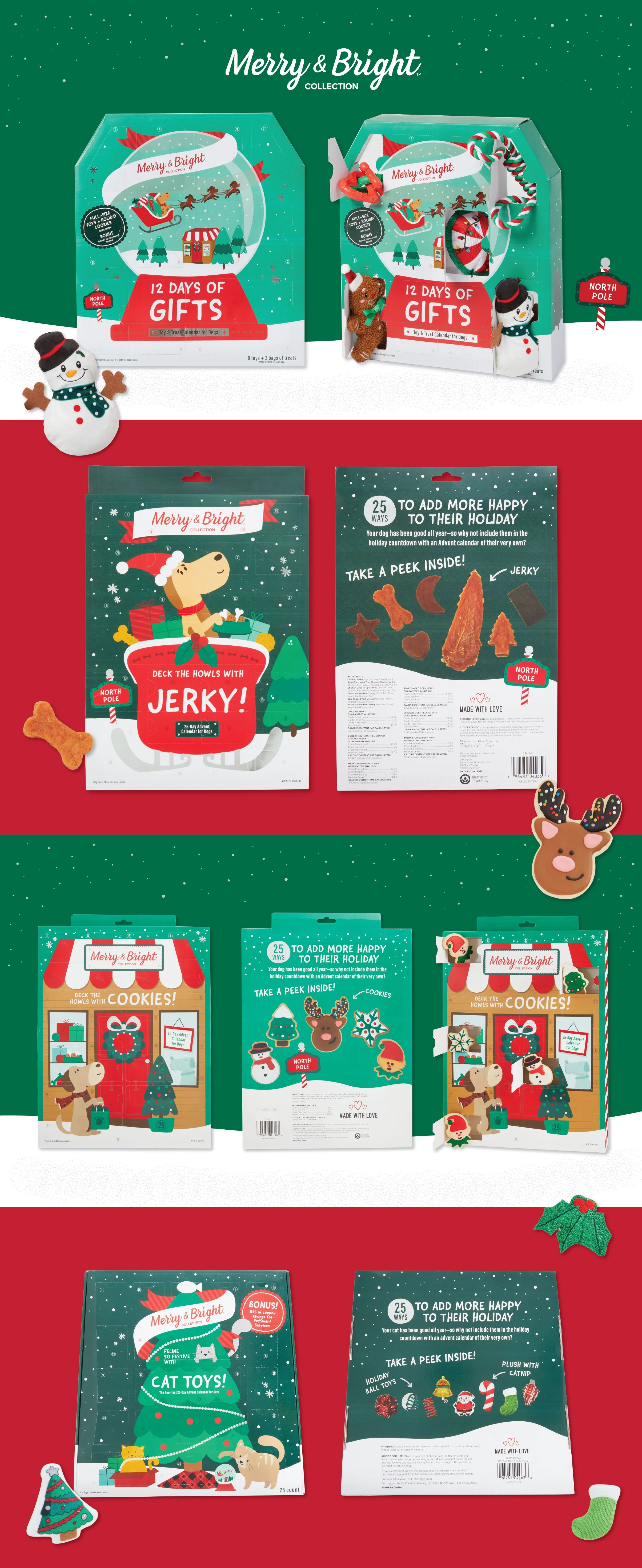 Custom illustrations created for Merry & Bright advent calendars, developed through thoughtful storyboarding to build a cohesive, playful narrative across multiple items. Silver foil and spot gloss finishes were used to elevate the designs, adding visual excitement and a sense of holiday magic.
